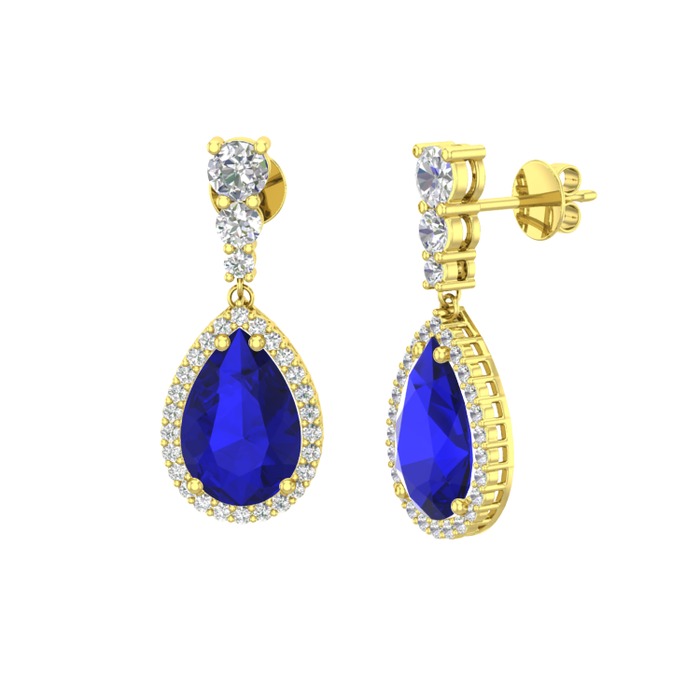 Lab safir ve beyaz zirkon 18 ayar altın küpe