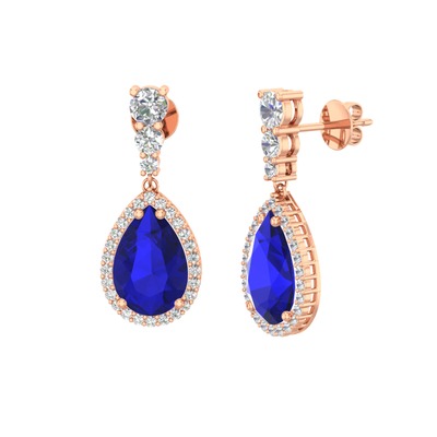 Lab safir ve beyaz zirkon 925 ayar rose altın kaplama gümüş küpe