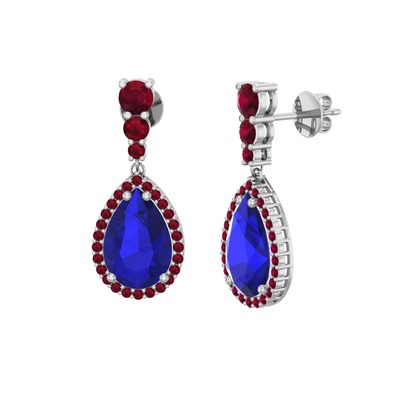 Lab safir ve kök yakut 8 ayar beyaz altın küpe