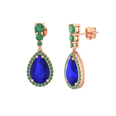 Lab safir ve kök zümrüt 8 ayar rose altın küpe