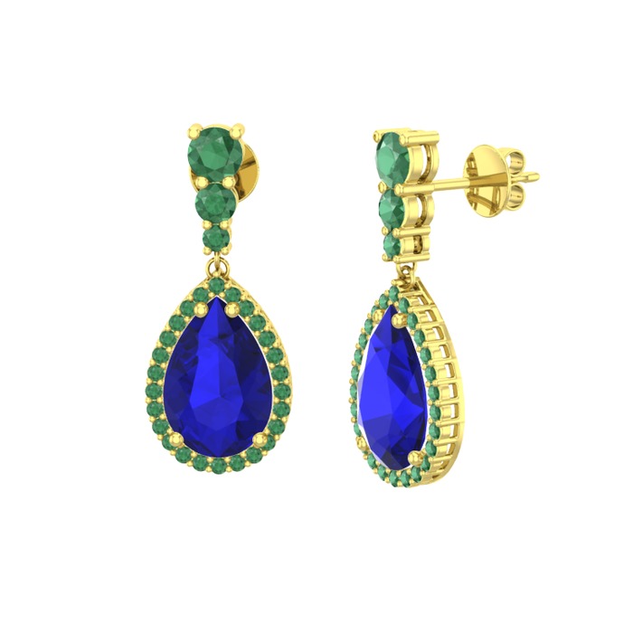 Lab safir ve kök zümrüt 925 ayar altın kaplama gümüş küpe
