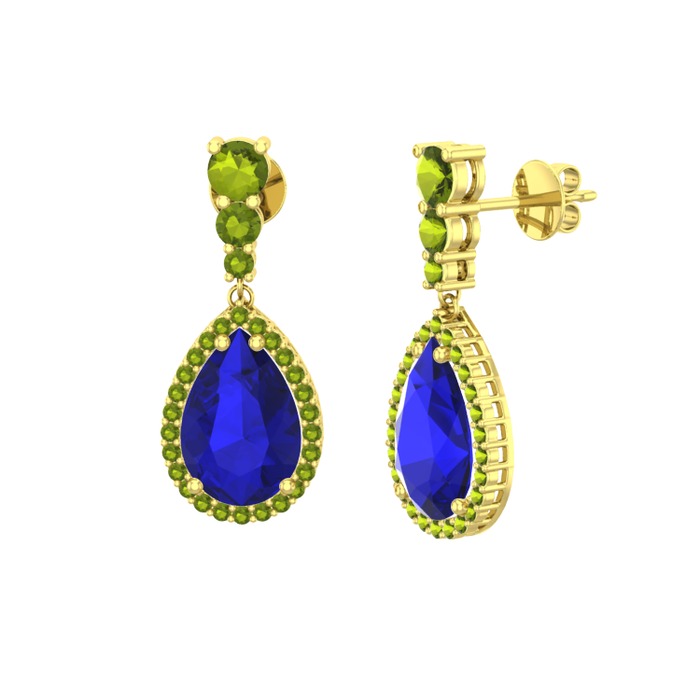 Lab safir ve peridot 18 ayar altın küpe