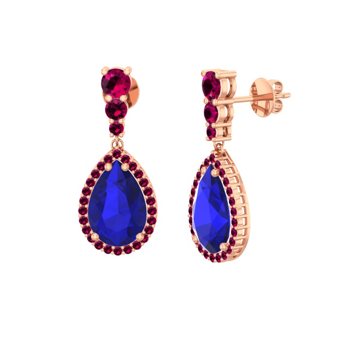 Lab safir ve rodolit garnet 18 ayar rose altın küpe