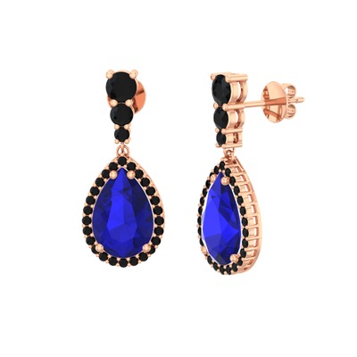 Lab safir ve siyah zirkon 8 ayar rose altın küpe