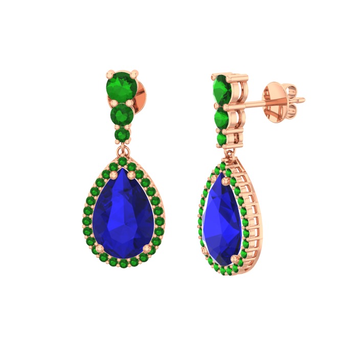 Lab safir ve yeşil kuvars 925 ayar rose altın kaplama gümüş küpe