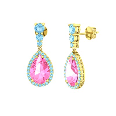 Pembe kuvars ve akuamarin 925 ayar altın kaplama gümüş küpe