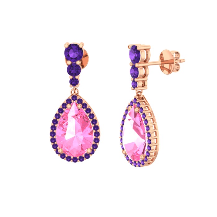 Pembe kuvars ve ametist 925 ayar rose altın kaplama gümüş küpe