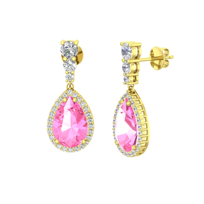 Pembe kuvars ve beyaz zirkon 8 ayar altın küpe