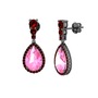 Pembe kuvars ve garnet 925 ayar siyah rodyum kaplama gümüş küpe