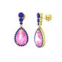 Pembe kuvars ve lab safir 8 ayar altın küpe