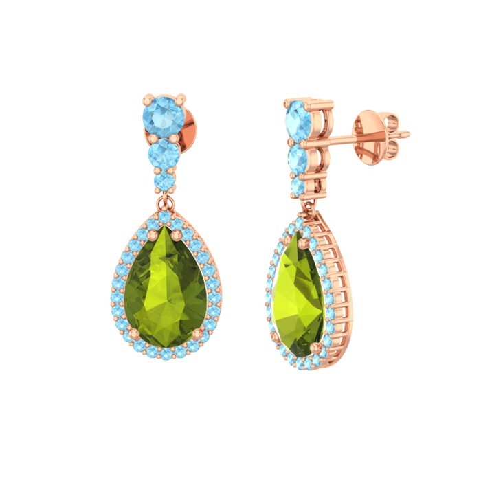 Peridot ve akuamarin 8 ayar rose altın küpe