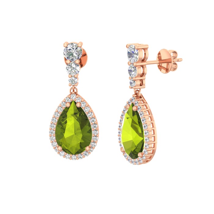 Peridot ve beyaz zirkon 8 ayar rose altın küpe