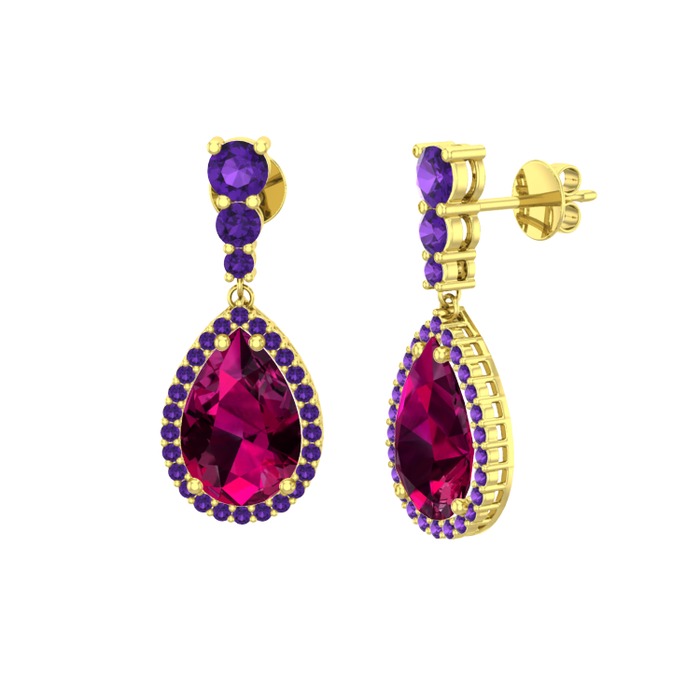 Rodolit garnet ve ametist 18 ayar altın küpe