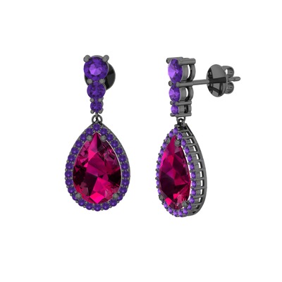 Rodolit garnet ve ametist 925 ayar siyah rodyum kaplama gümüş küpe