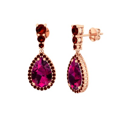 Rodolit garnet ve garnet 8 ayar rose altın küpe