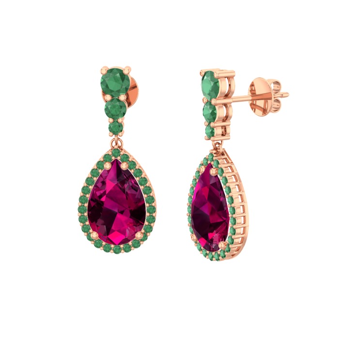 Rodolit garnet ve kök zümrüt 14 ayar rose altın küpe