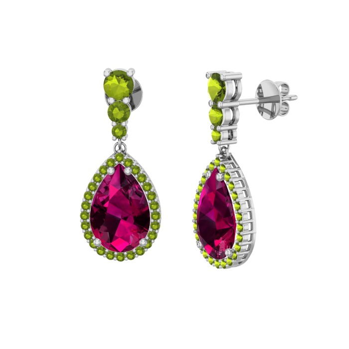 Rodolit garnet ve peridot 8 ayar beyaz altın küpe