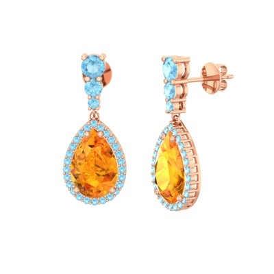 Sitrin ve akuamarin 925 ayar rose altın kaplama gümüş küpe