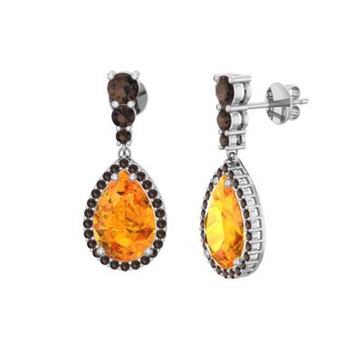 Sitrin ve dumanlı kuvars 925 ayar gümüş küpe