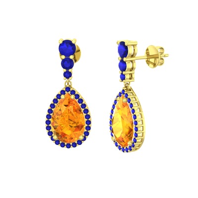 Sitrin ve lab safir 8 ayar altın küpe