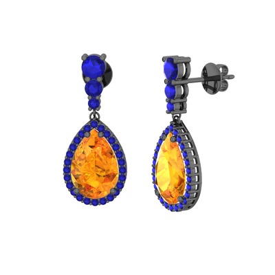 Sitrin ve lab safir 925 ayar siyah rodyum kaplama gümüş küpe