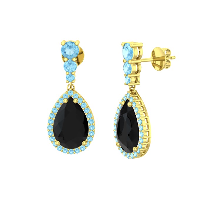 Siyah zirkon ve akuamarin 14 ayar altın küpe