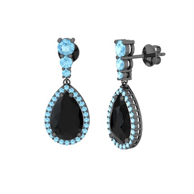 Siyah zirkon ve akuamarin 925 ayar siyah rodyum kaplama gümüş küpe