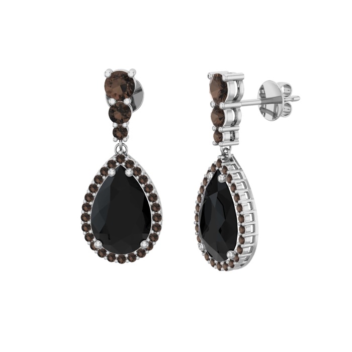Siyah zirkon ve dumanlı kuvars 18 ayar beyaz altın küpe