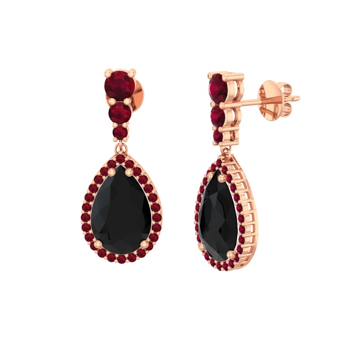 Siyah zirkon ve kök yakut 8 ayar rose altın küpe