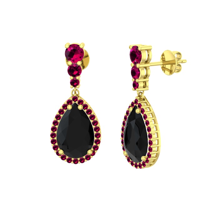 Siyah zirkon ve rodolit garnet 14 ayar altın küpe