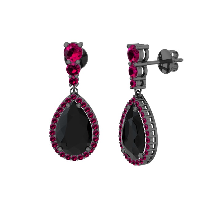Siyah zirkon ve rodolit garnet 925 ayar siyah rodyum kaplama gümüş küpe