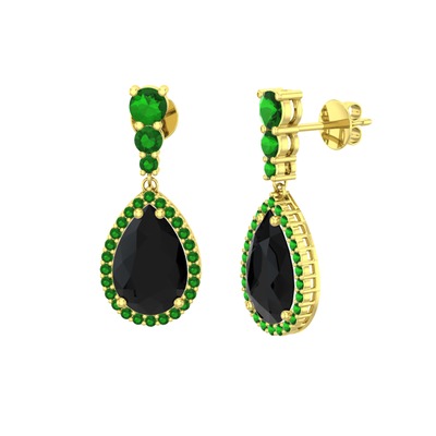 Siyah zirkon ve yeşil kuvars 8 ayar altın küpe