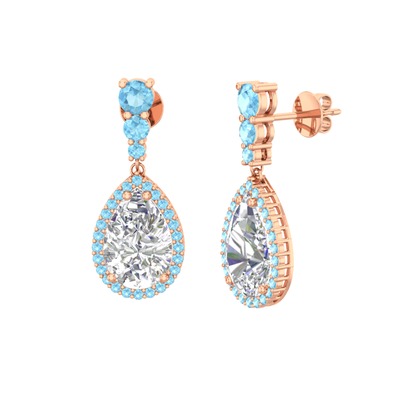 Swarovski ve akuamarin 14 ayar rose altın küpe