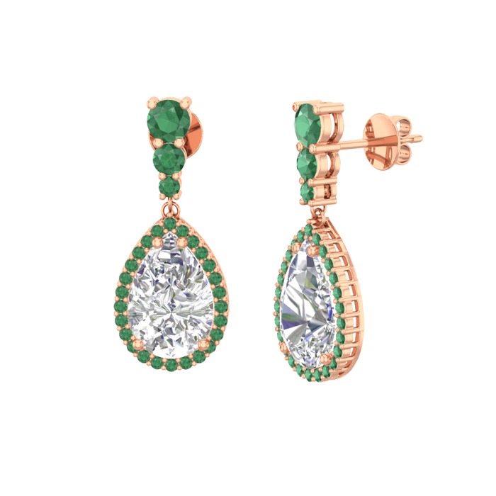 Swarovski ve kök zümrüt 925 ayar rose altın kaplama gümüş küpe
