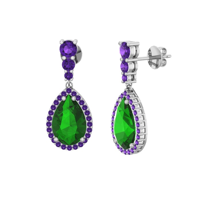 Yeşil kuvars ve ametist 8 ayar beyaz altın küpe
