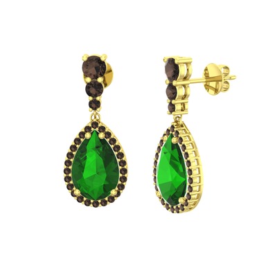 Yeşil kuvars ve dumanlı kuvars 8 ayar altın küpe