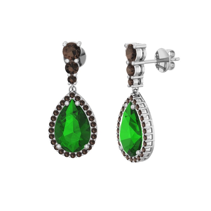 Yeşil kuvars ve dumanlı kuvars 925 ayar gümüş küpe