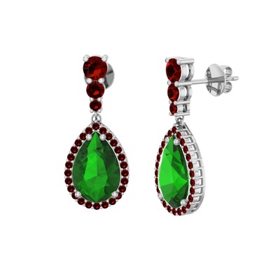 Yeşil kuvars ve garnet 14 ayar beyaz altın küpe
