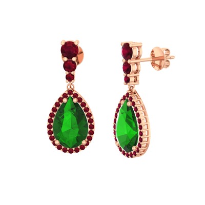 Yeşil kuvars ve kök yakut 14 ayar rose altın küpe