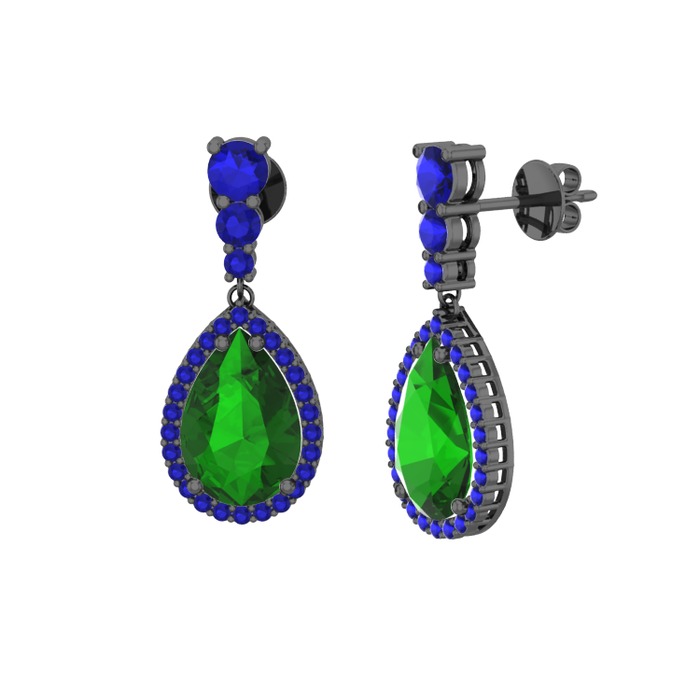 Yeşil kuvars ve lab safir 925 ayar siyah rodyum kaplama gümüş küpe