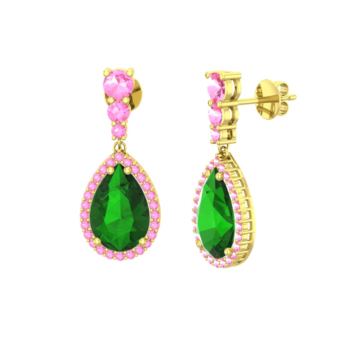 Yeşil kuvars ve pembe kuvars 925 ayar altın kaplama gümüş küpe