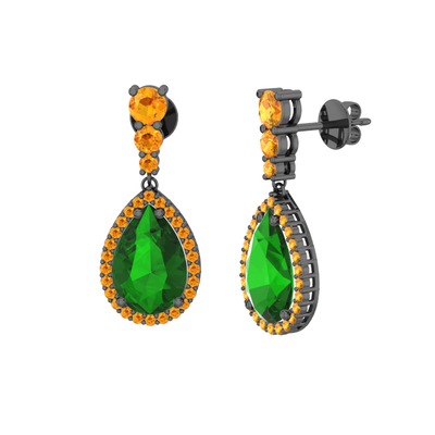 Yeşil kuvars ve sitrin 925 ayar siyah rodyum kaplama gümüş küpe