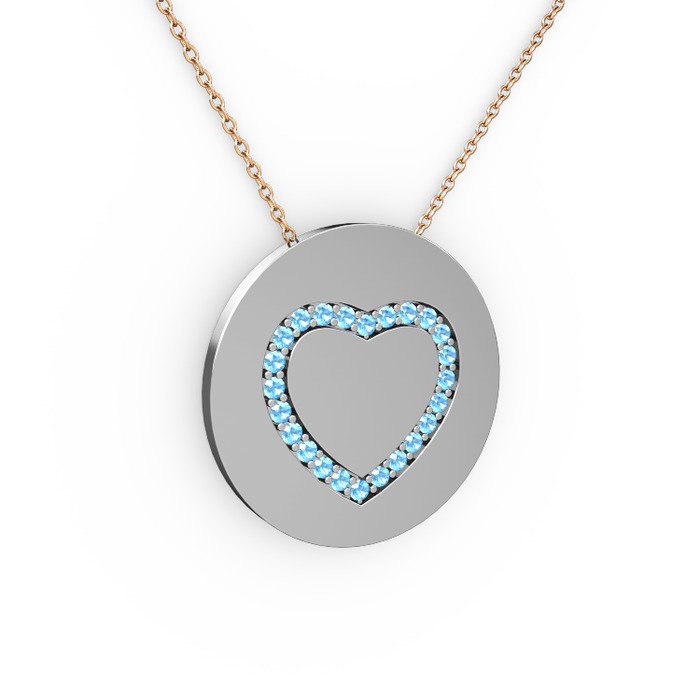 Akuamarin 925 ayar gümüş kolye (40 cm rose altın rolo zincir)