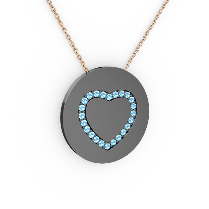 Akuamarin 925 ayar siyah rodyum kaplama gümüş kolye (40 cm rose altın rolo zincir)