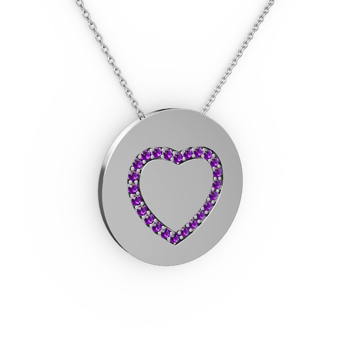 Ametist 14 ayar beyaz altın kolye (40 cm gümüş rolo zincir)