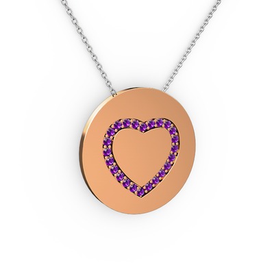 Ametist 14 ayar rose altın kolye (40 cm gümüş rolo zincir)