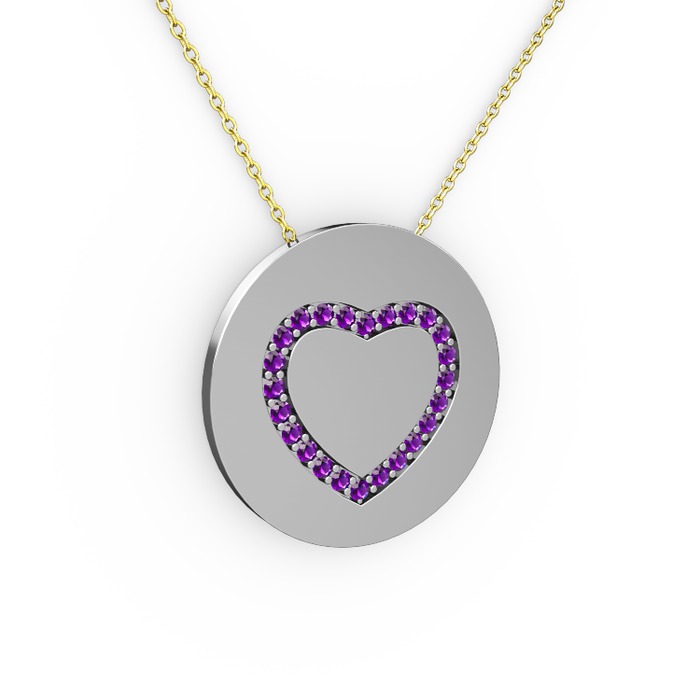 Ametist 18 ayar beyaz altın kolye (40 cm gümüş rolo zincir)