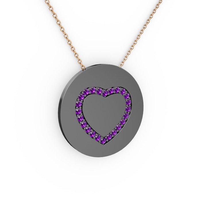 Ametist 925 ayar siyah rodyum kaplama gümüş kolye (40 cm rose altın rolo zincir)