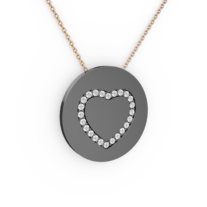 Beyaz zirkon 925 ayar siyah rodyum kaplama gümüş kolye (40 cm gümüş rolo zincir)