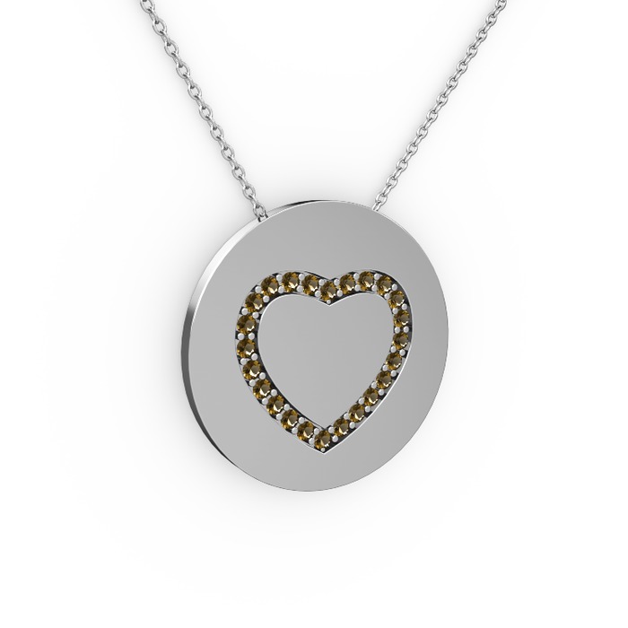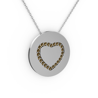 Dumanlı kuvars 14 ayar beyaz altın kolye (40 cm beyaz altın rolo zincir)
